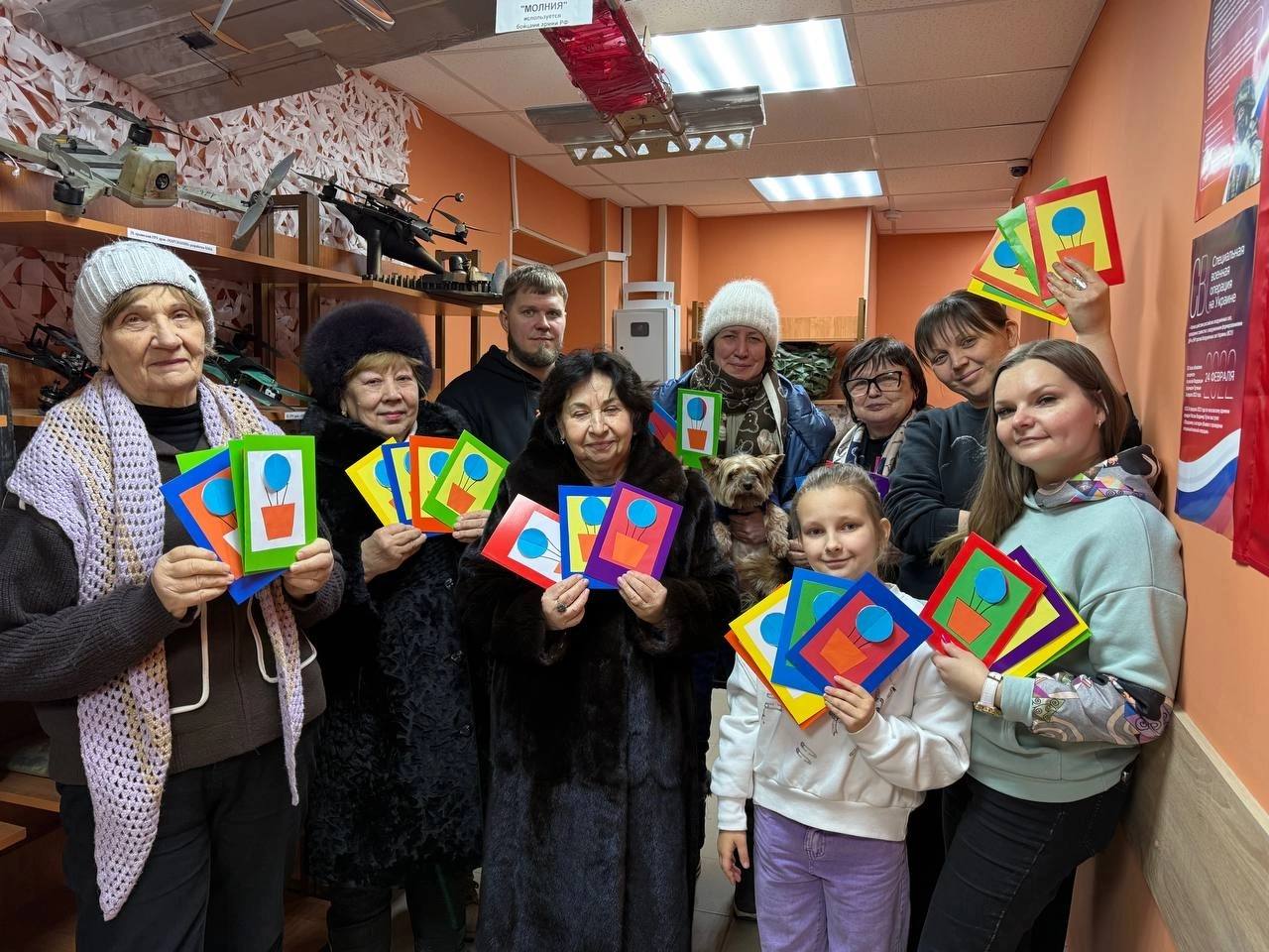 Особое место в череде мероприятий заняла творческая встреча на базе Центра гуманитарной помощи БФ «Хранители Добра», на которой участники создавали авторские открытки с поздравлениями для бойцов.
