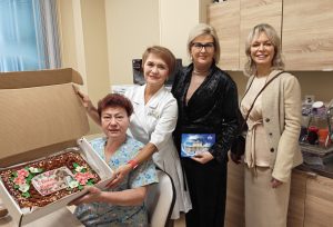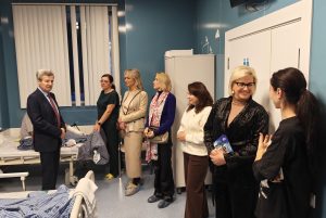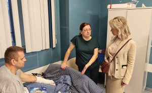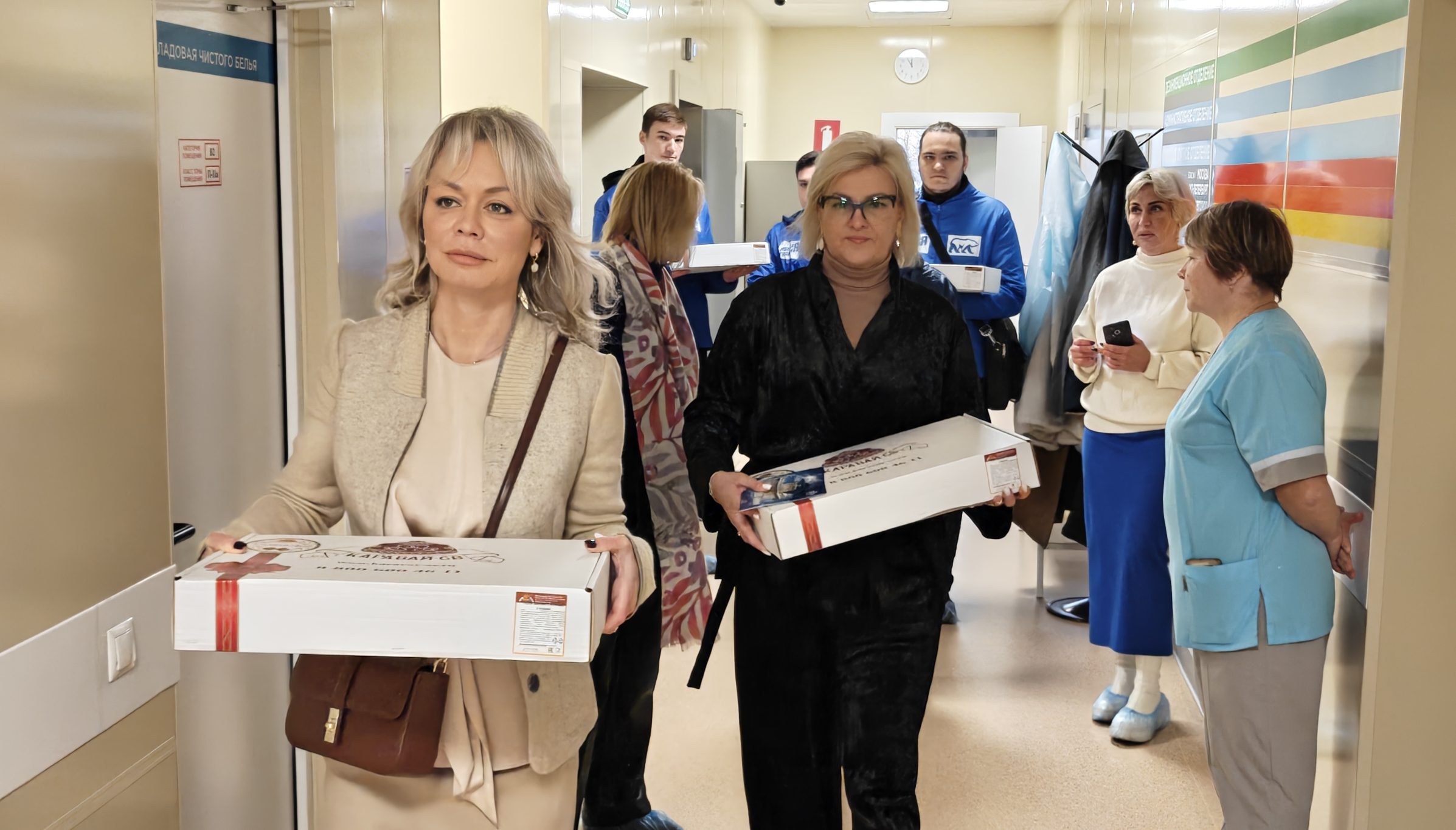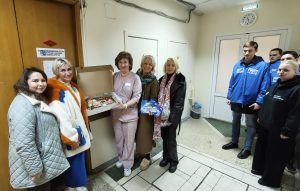 Активистки «Женского движения» партии, как и всегда, привезли все необходимое для раненых. Молодогвардейцы помогли с разгрузкой гуманитарной помощи, в которую вошли инвалидные кресла-коляски, ходунки-роллаторы, санитарные кресла-стулья взрослые и детские, и другие необходимые вещи. А затем активистки посетили больничные палаты, чтобы вручить матерям, ухаживающим за сыновьями, тематические подарки, благодарственные письма и сладкие пироги, что создало в стенах медучреждения по-настоящему тёплую, семейную атмосферу. Особый подарок приготовила Милена Авимская.