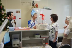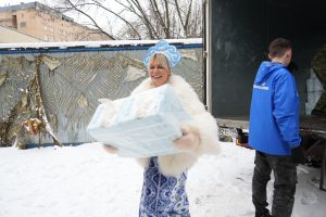 Представители художественно-графического факультета Института изящных искусств передали созданные студентами новогодние сувениры и поделки для бойцов. Ирина Елифёрова от «Женского движения» и молодогвардейцы передали бойцам конфеты и сладкие наборы, а муниципальный депутат Анастасия Туровская передала раненым открытки, которые на мастер-классах сделали многодетные мамы.
