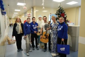 В рамках партийного проекта «Женское движение Единой России» и при поддержке регионального отделения ВОД «Матери России» активистки движения и депутат Мосгордумы, музыкант и исполнитель Родион Газманов поздравили с наступающим Новым годом участников специальной военной операции, проходящих лечение в Главном клиническом военном госпитале имени академика Н. Н. Бурденко, и членов их семей.