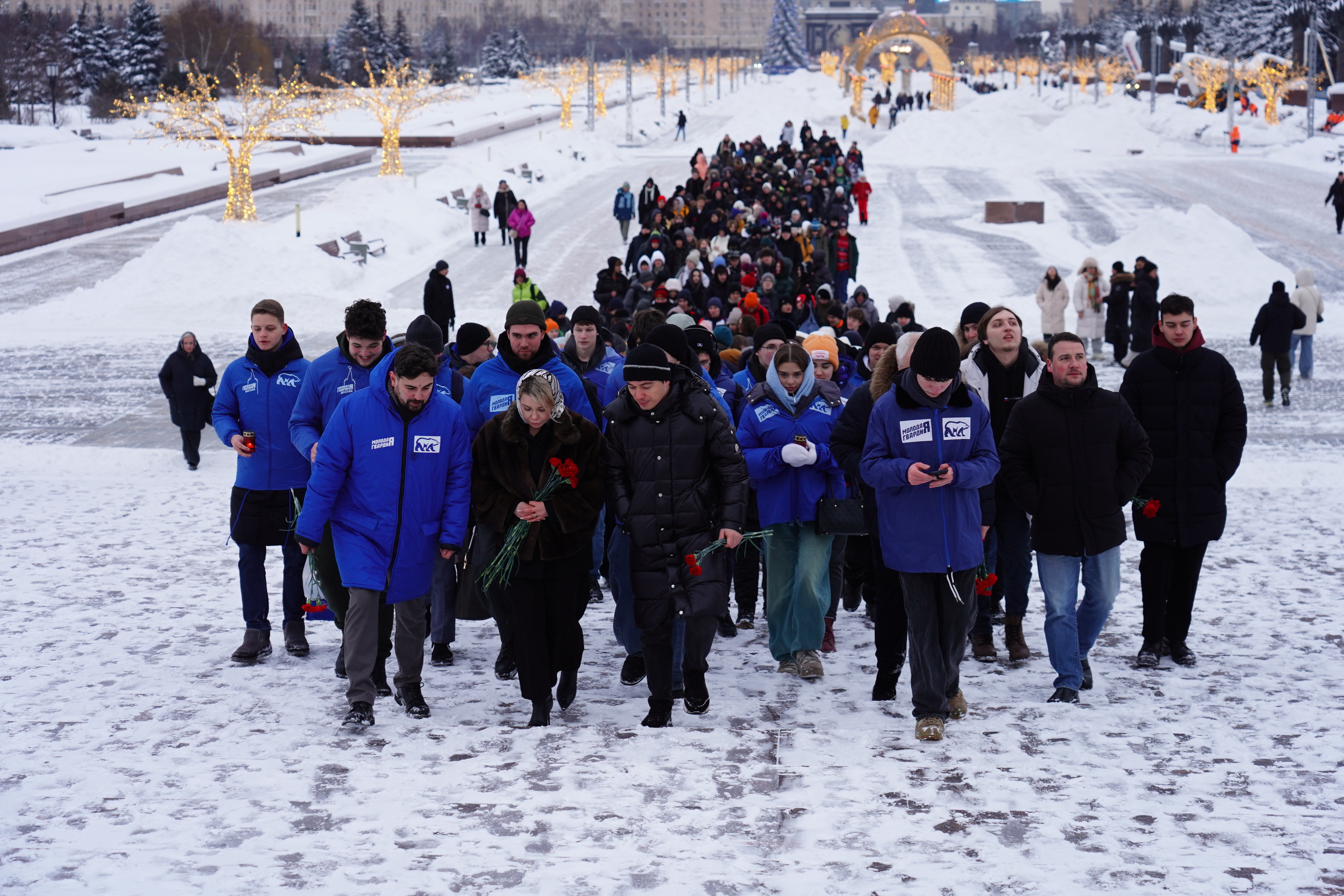 Совместно с Московским отделением партии «Единая Россия» и жителями столицы активисты почтили память защитников минутой молчания, после чего возложили цветы к Вечному огню. В акции также приняли участие: депутат Московской городской Думы Родион Газманов, глава муниципального округа Дорогомилово Харис Минажетдинов, председатель общественного совета партийного проекта «Историческая память» в г. Москве Наталия Мельяновская.