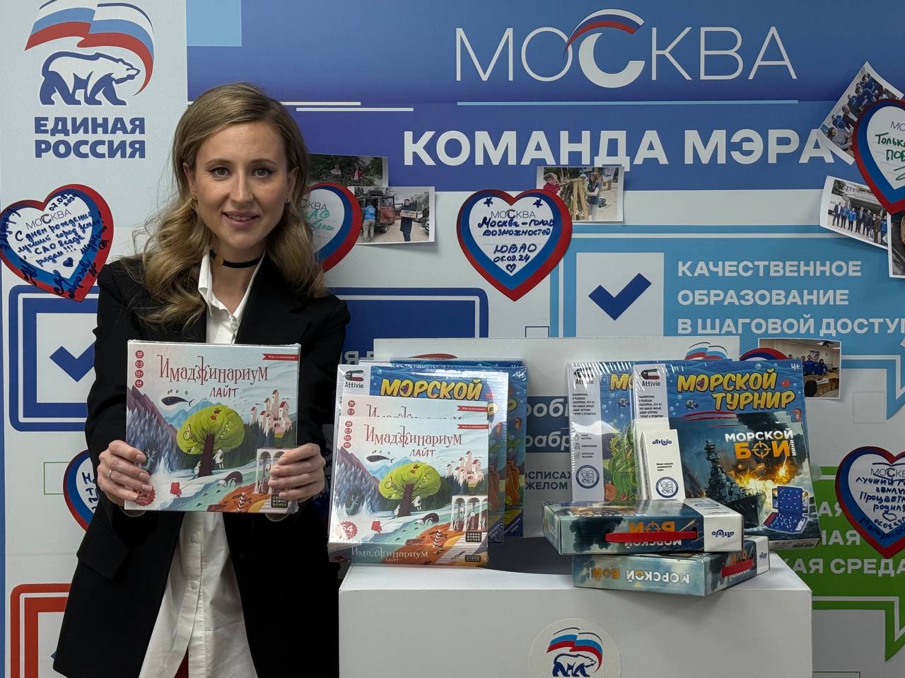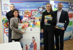 Депутат Московской городской Думы Дарья Борисова передала подарки в «Коробку храбрости», установленную в Московском городском реготделении «Единой России».