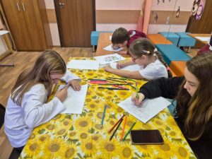 Готовые рисунки разместили на видных местах в школе, создав праздничную атмосферу.