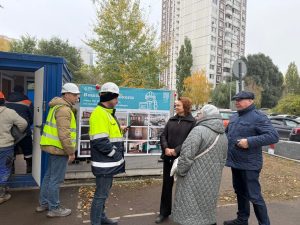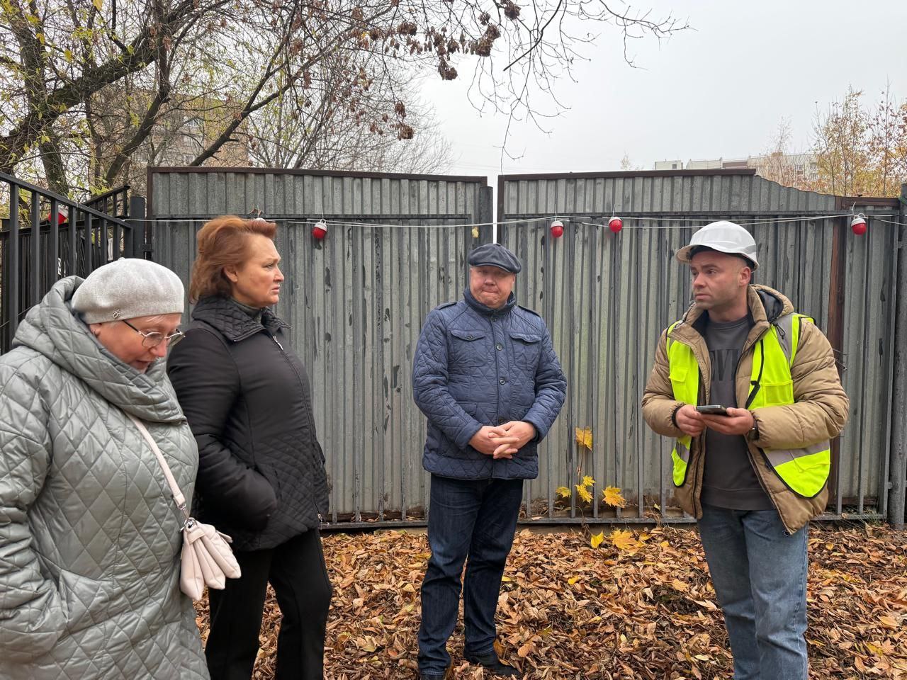 Людмила Стебенкова, совместно с руководителем Совета депутатов Натальей Григорьевной Кувардиной и представителями управы, посетила строительную площадку капитального ремонта школы. Руководитель строительных работ показал, где уже отмечены границы нового прохода между ФОКом и школой.