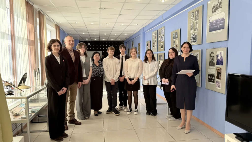 После беседы ученики кружка экскурсоводов показали гостю школьный музей «Покорители вселенной» и рассказали о своих проектах, посвящённых истории космонавтики.