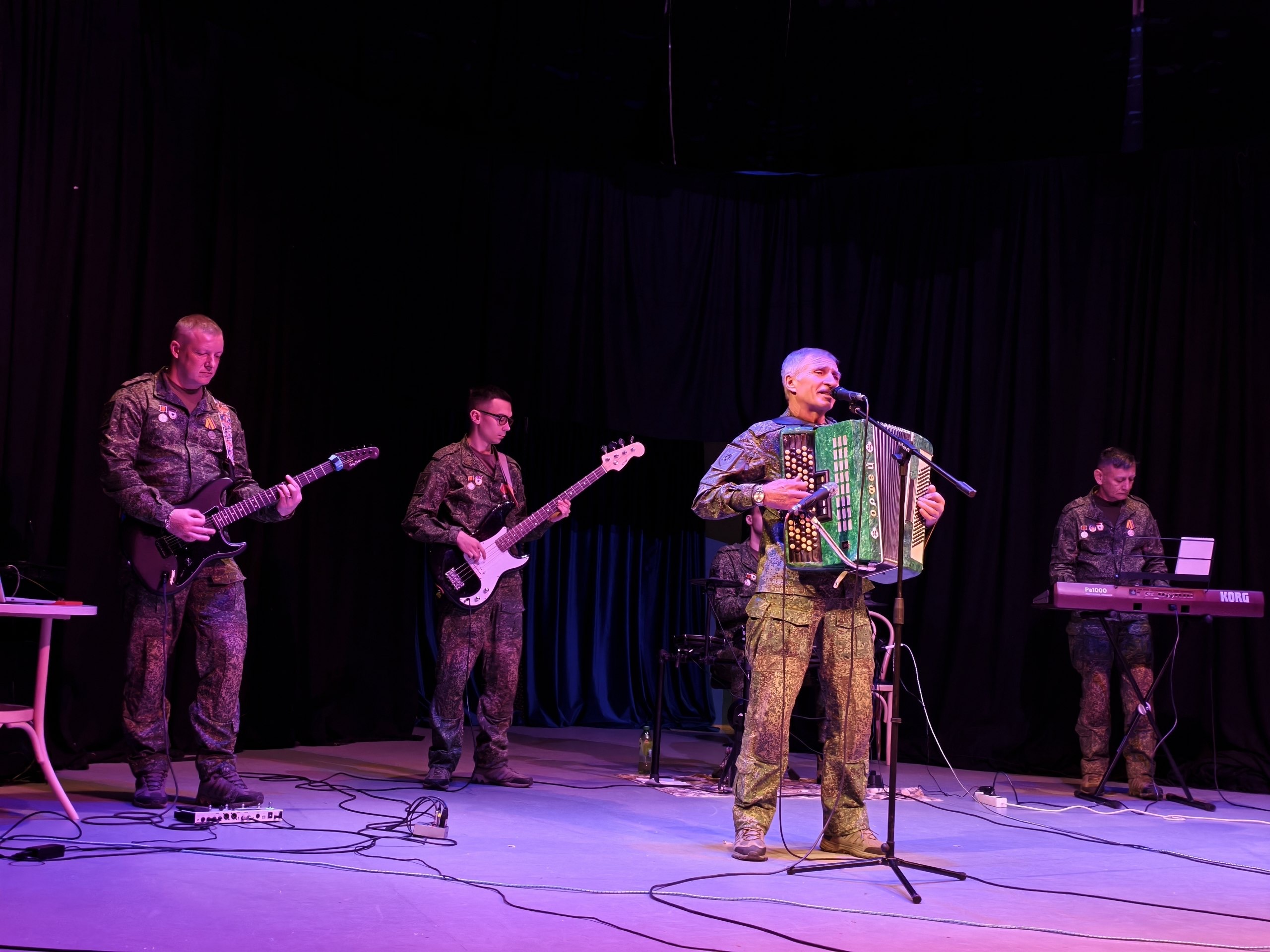 В программе концерта – авторские композиции, написанные непосредственно в зоне СВО. Основные темы – патриотизм, фронтовое братство, любовь к близким и вера в Победу. Также в репертуаре ансамбля – известные песни, переосмысленные и исполненные в новом формате.