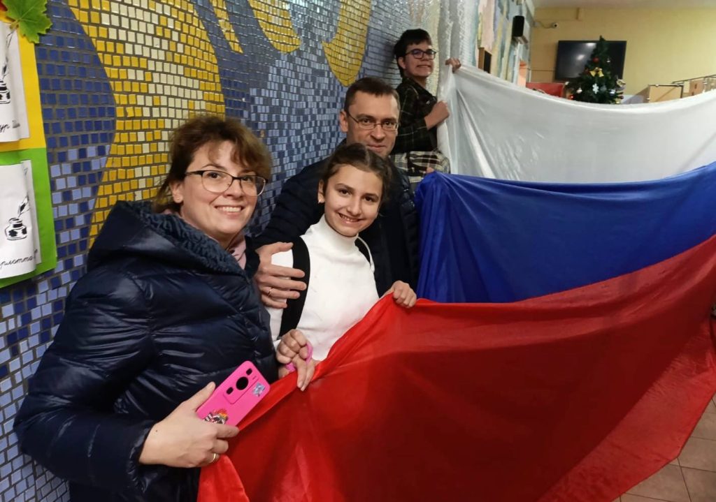 Помимо этого, при поддержке учителей и родителей в школе № 2115 был организован флешмоб, в рамках которого были развернуты полотна триколора под патриотическую музыку.