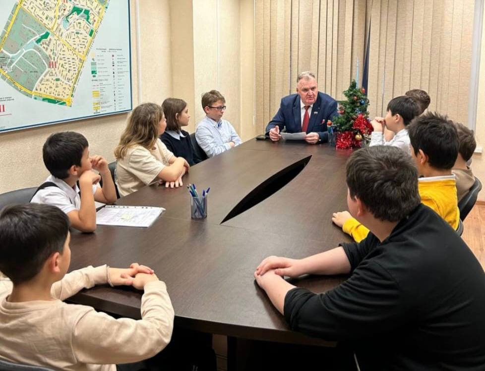В честь Дня Конституции Российской Федерации, в рамках ознакомления с местным самоуправлением муниципальный депутат от «Единой России» Олег Михайлов организовал учащимся школы № 2115 экскурсию в Совет муниципальных депутатов района Черемушки.