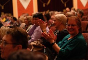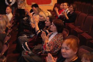 После окончания спектакля режиссер театра и сценарист Валерия Янышева вышла к гостьям и рассказала о создании постановки и истории театра.