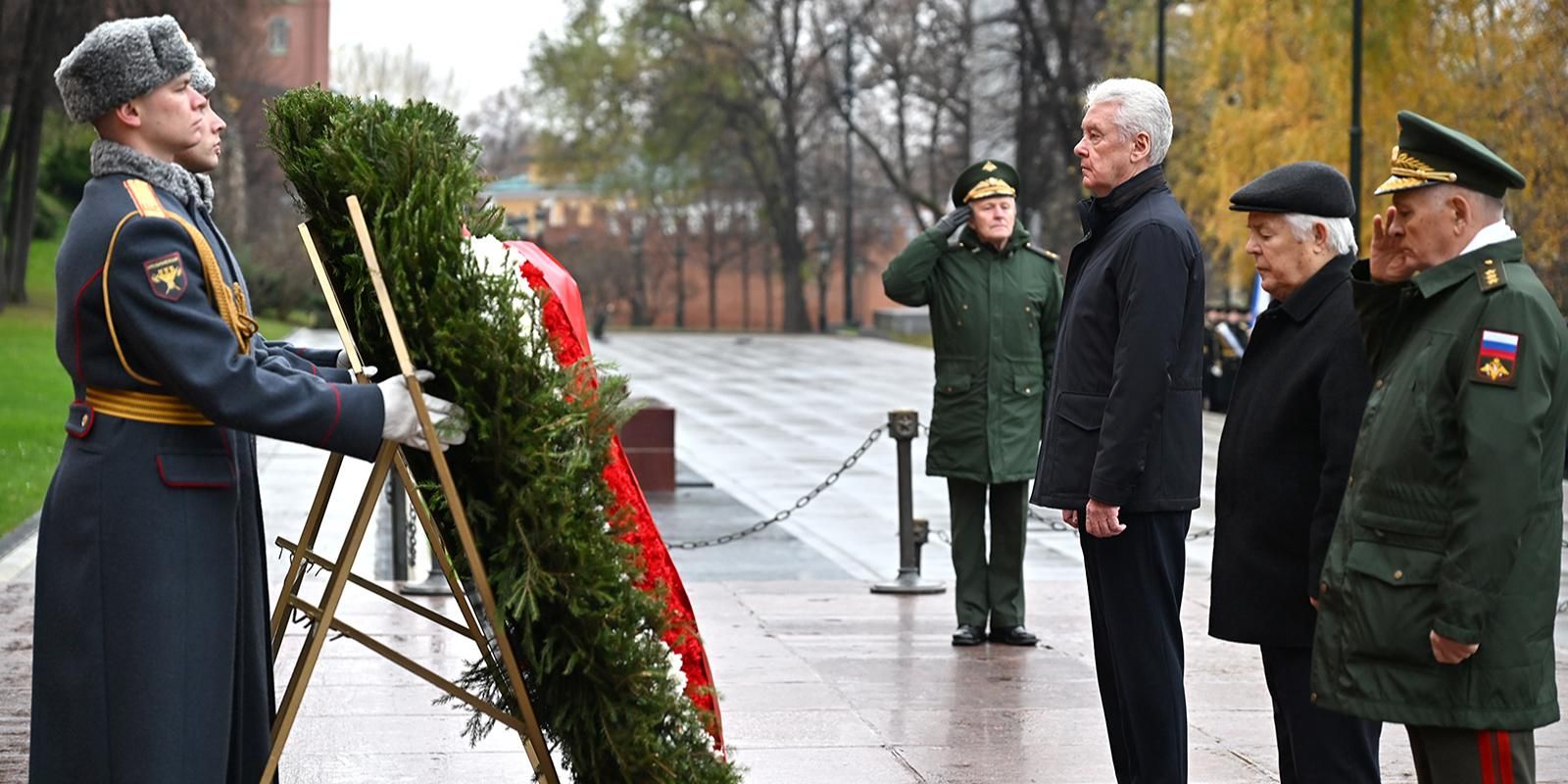 Сергей Собянин возложил венки к Могиле Неизвестного Солдата в Александровском саду в честь 84-й годовщины военного парада на Красной площади. Его сопровождали председатель Московского городского совета ветеранов Георгий Пашков, исполняющий обязанности председателя Московского комитета ветеранов войны Виктор Закидкин, председатель координационного совета Международного союза «Содружество общественных организаций ветеранов (пенсионеров) независимых государств» Василий Волков, а также участники движения «Мосволонтер», представители Всероссийского детско-юношеского военно-патриотического общественного движения «Юнармия» и кадетского движения.