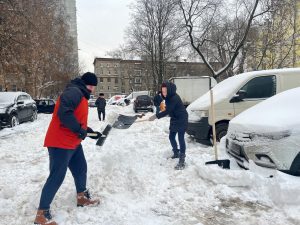 Молодогвардейцы САО вышли на помощь в районе Коптево. Расчищали тротуары, подходы к подъездам и социальным объектам, освобождали от снега дворы и парковочные карманы.