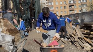 В преддверии Пасхи активисты «Молодой Гвардии Единой России» Москвы совместно с посольством Беларуси приняли участие в субботнике на территории Храма Великомученицы Ирины в Покровском.