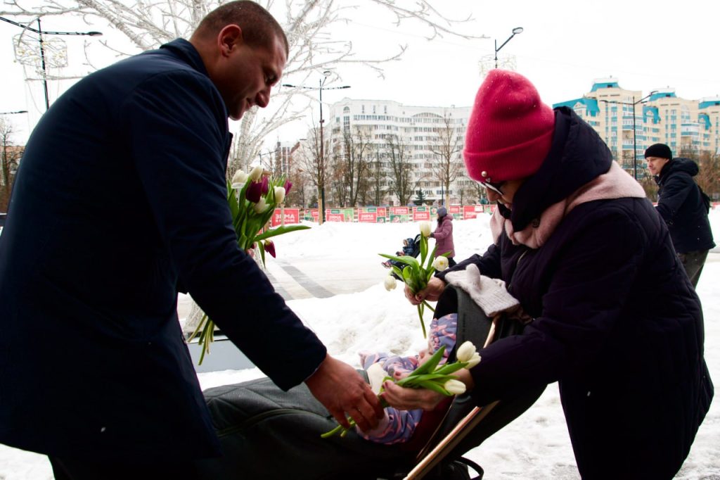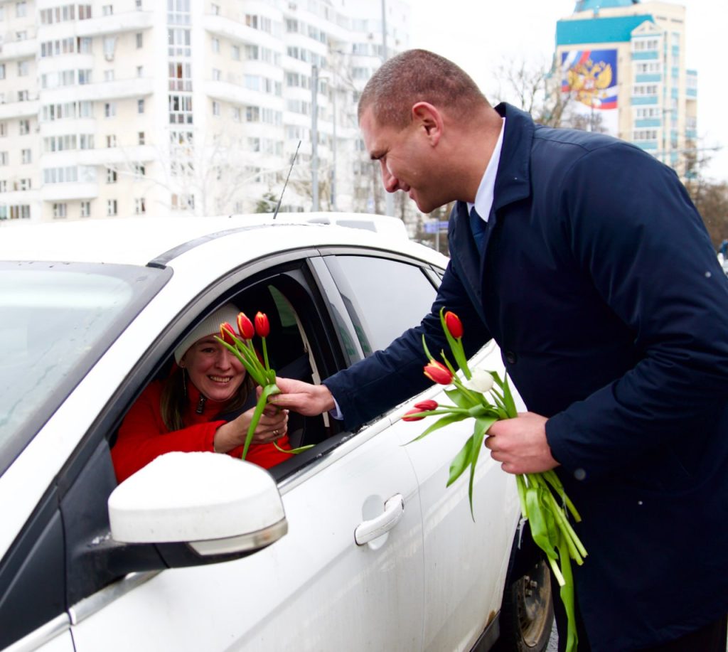 Представители «Единой России», в том числе муниципальные депутаты, на улицах Зеленограда вручали цветы и поздравляли женщин с Международным женским днем.