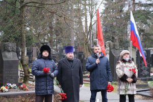 В районе Можайский у братской могилы на Кунцевском кладбище о героях Битвы под Москвой участникам напомнили глава управы Алексей Мазанов, муниципальный депутат Денис Лыткин, председатель Совета ветеранов Марина Тришина и настоятель храма Святителя Иова отец Александр Нарушев.
