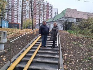 «В настоящее время по просьбе жителей района организованы как удобный спуск по лестнице, так и альтернативный способ с возможностью прохода со средствами малой мобильности – колясками, велосипедами и другими», — рассказала Светлана Краснопольская.
