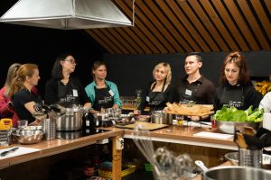 В одной из кулинарных студий участники готовили ужин под руководством шеф-повара и общались с гостем. Не обошлось без забавных моментов: «Мне кажется, мы с Вами встречались в коридорах музыкальной школы», — одна из участниц узнала в Газманове бывшего сокурсника по музобучению.