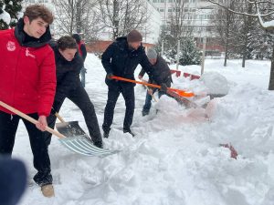 Акция «Снежный десант» завершилась общей фотографией на расчищенной территории. Волонтеры выразили готовность и дальше оказывать посильную помощь медицинским учреждениям, где лечатся участники специальной военной операции и ветераны.