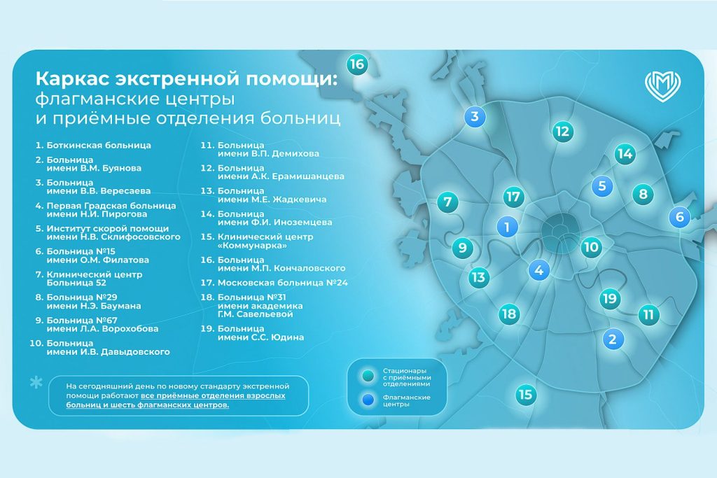 Сегодня по новому стандарту экстренной помощи работают все приемные отделения взрослых больниц и шесть флагманских центров. Каждый из них способен принять около 200 неотложных пациентов в день. В итоге горожане получают своевременную и высокопрофессиональную медпомощь.