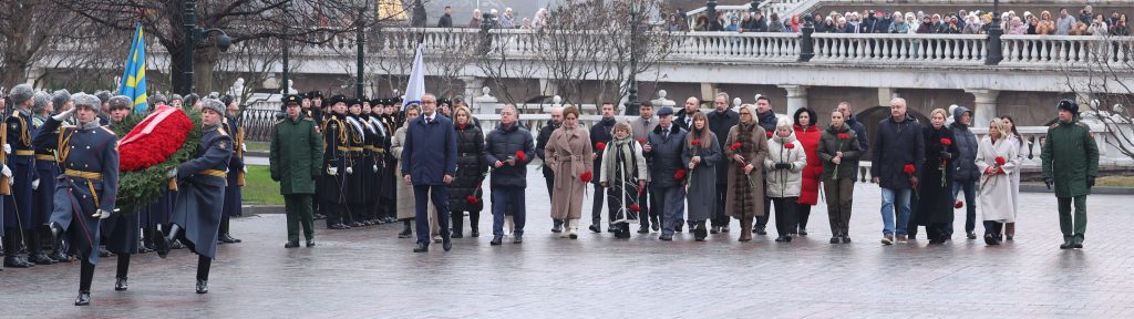 В день 84-й годовщины начала контрнаступления советских войск против немецко-фашистских войск в Битве под Москвой депутаты Мосгордумы почтили память героев Великой Отечественной войны и возложили цветы к Могиле Неизвестного Солдата в Александровском саду и памятнику маршалу Г.К. Жукову.