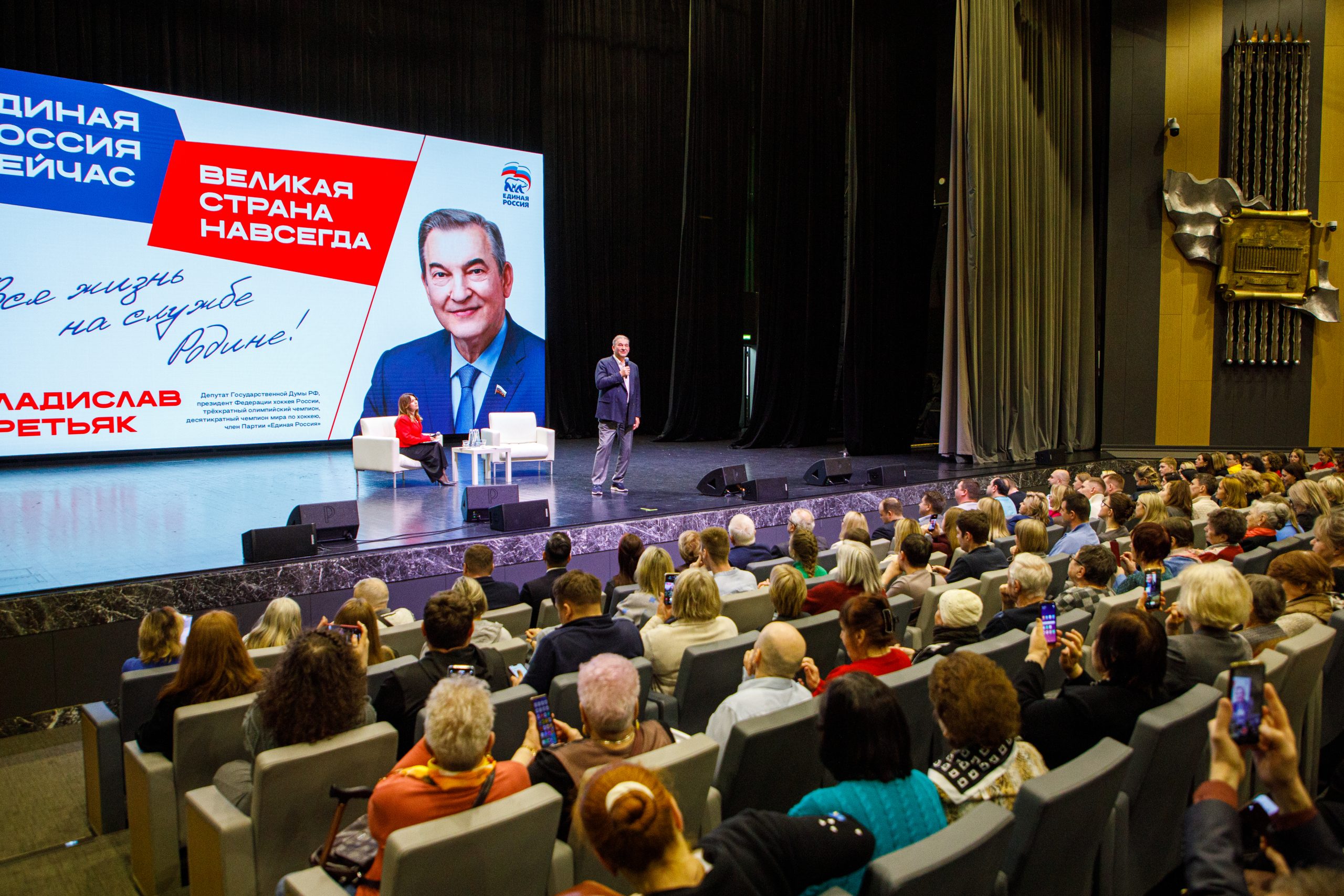 Депутат Государственной Думы РФ, президент федерации хоккея России, трехкратный олимпийский чемпион, десятикратный чемпион мира по хоккею, член партии «Единая Россия» Владислав Третьяк провел мастер-класс по хоккею для жителей Восточного округа Москвы. В своем выступлении «Вся жизнь – на службе Родине» он рассказал о том, как правильно создавать и воспитывать команду, и какие обязательные составляющие важны для победы и в спорте, и в обычной жизни.