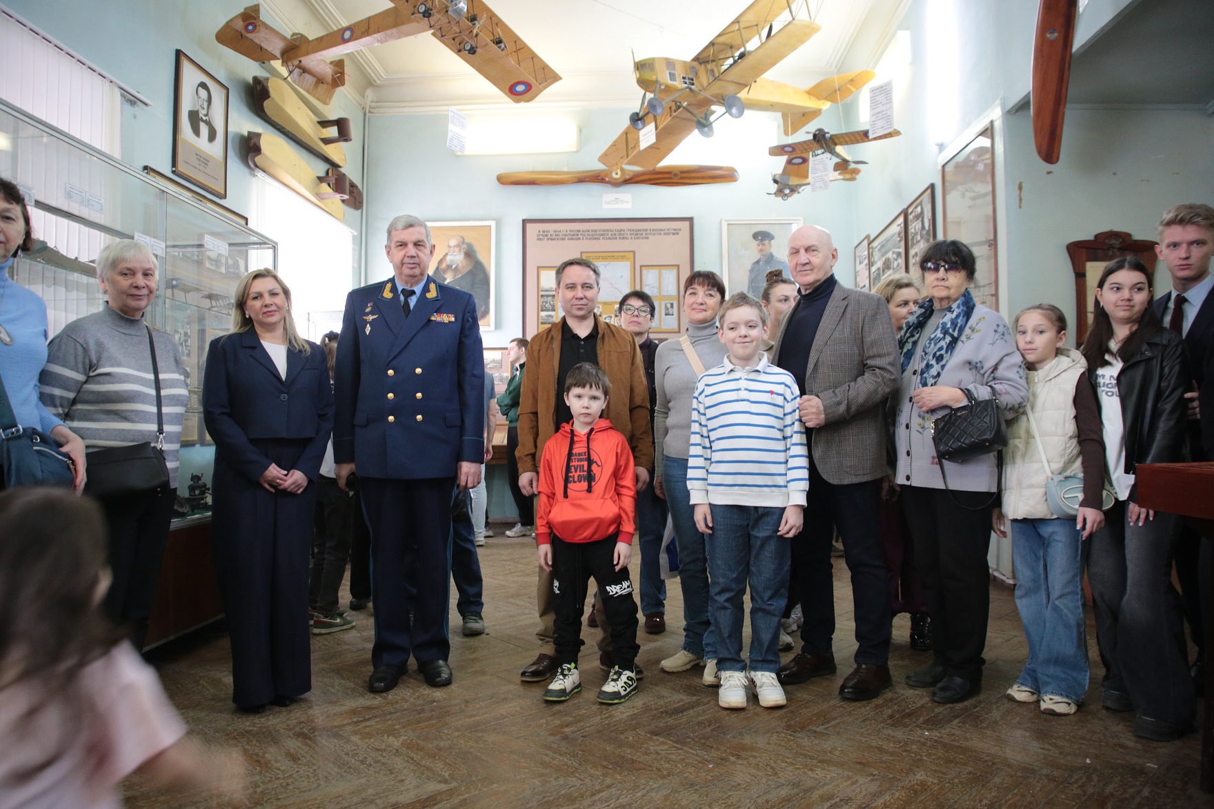 В ходе экскурсии посетители познакомились с коллекцией музея, в которой собрано 34 тыс. экспонатов. В восьми выставочных залах представлена история отечественной авиации и космонавтики — от первых аэропланов и дирижаблей до спутников. Здесь можно увидеть макеты первых искусственных спутников Земли и орбитального комплекса «Мир», первый космический скафандр, применявшийся на кораблях «Восток», и многое другое.