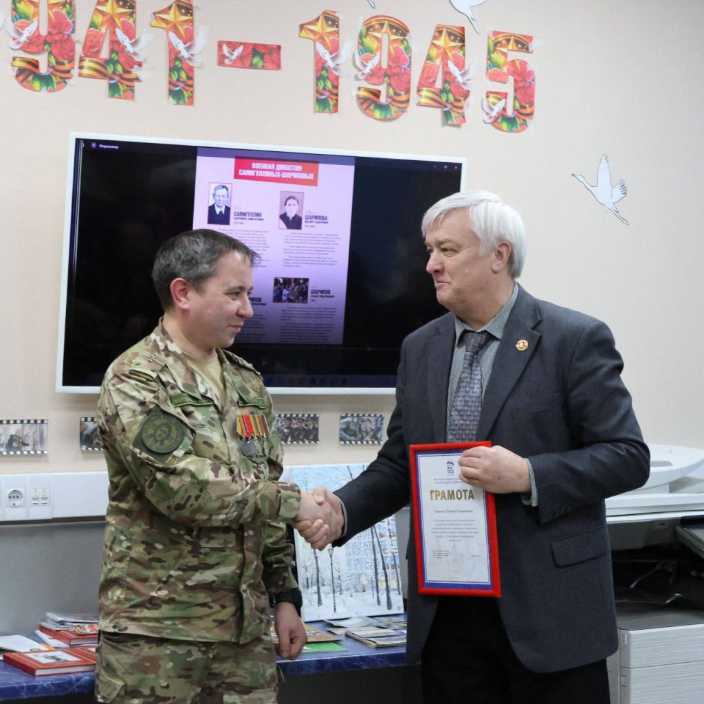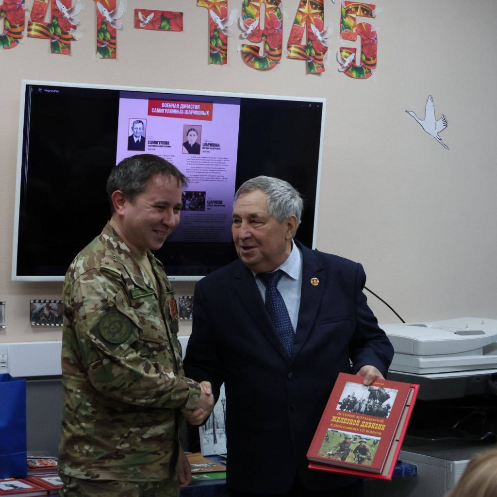 «Вручил грамоты за патриотическое воспитание молодежи. А еще сделал подарок с личной историей — передал книги, которые написал мой отец, о дивизии в которой он служил. Память становится ближе, когда передаешь её из рук в руки», — поделился Эльдар Шарипов.