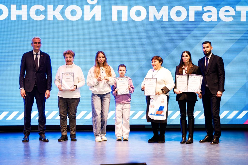 Кульминацией вечера стало награждение в трех номинациях. В номинации «СВОй ЮГ» отметили 22 волонтерские команды, которые на постоянной основе помогают участникам СВО и жителям воссоединенных регионов. Среди награжденных — Центр поддержки многодетных семей «Мельница», Благотворительный фонд «МЫ РЯДОМ», волонтерский штаб «СемБат», команды «Братская помощь», «Паучки ZябликоVо», «По ZOVу Сердца», проект «Вяжем-Нашим.РФ» и многие другие.