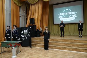 Напомним, проект «Парта Героя» стартовал в 2018 году. Это всероссийская образовательная инициатива партии «Единая России» в рамках проекта «Новая школа», цель которой – патриотическое воспитание через увековечение памяти о героях: земляках, ветеранах, участниках боевых действий, учёных, деятелях культуры и спортсменах. На школьных партах размещают фото и биографию героя, а право сидеть за такой партой предоставляется лучшим ученикам за успехи в учёбе и активную общественную жизнь, что позволяет им изучать историю и примеры доблести.
