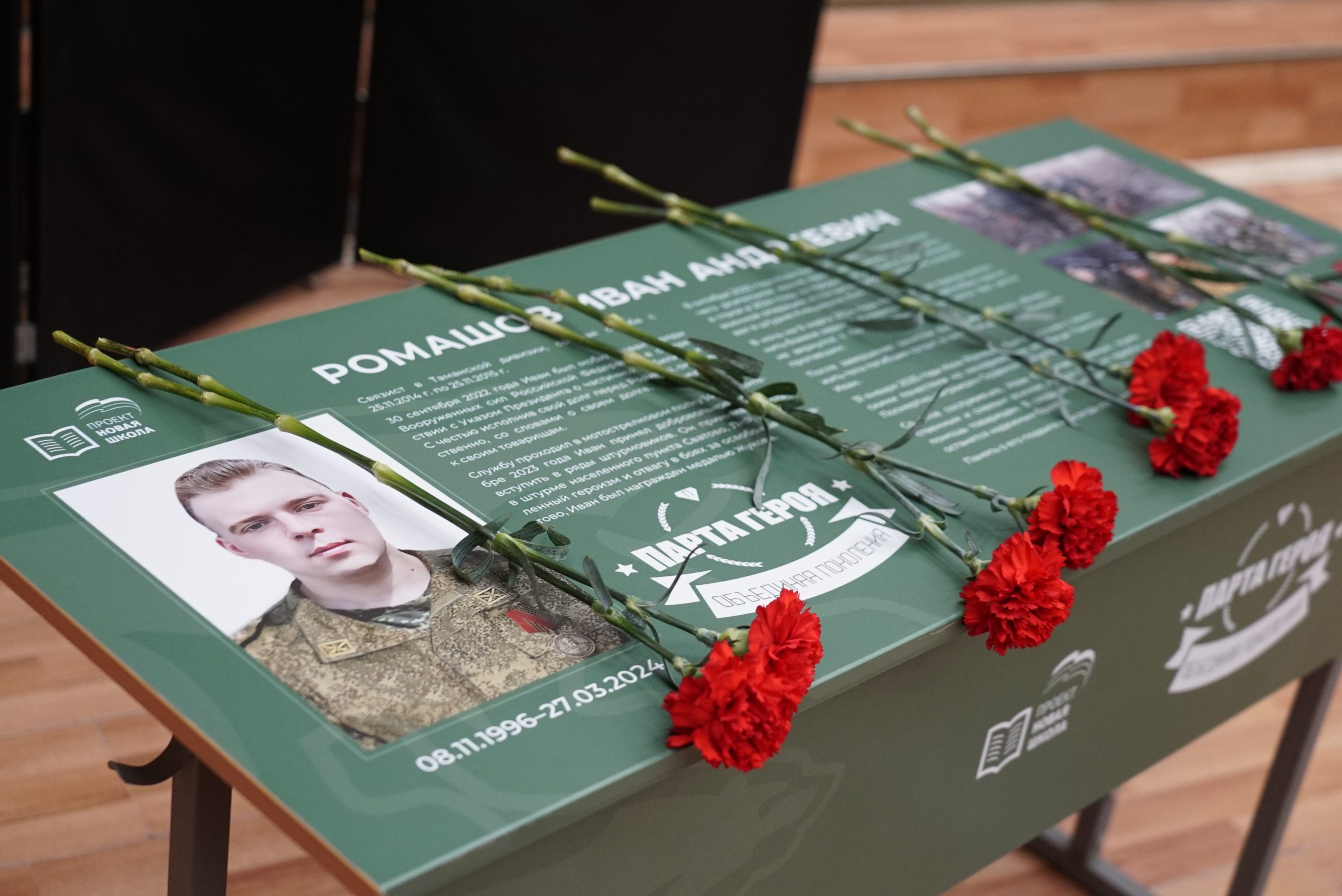 В школе № 86 имени М. Е. Катукова на северо-западе Москвы «Единая Россия» открыла Парту Героя в честь героически погибшего выпускника, участника СВО Ивана Ромашова.