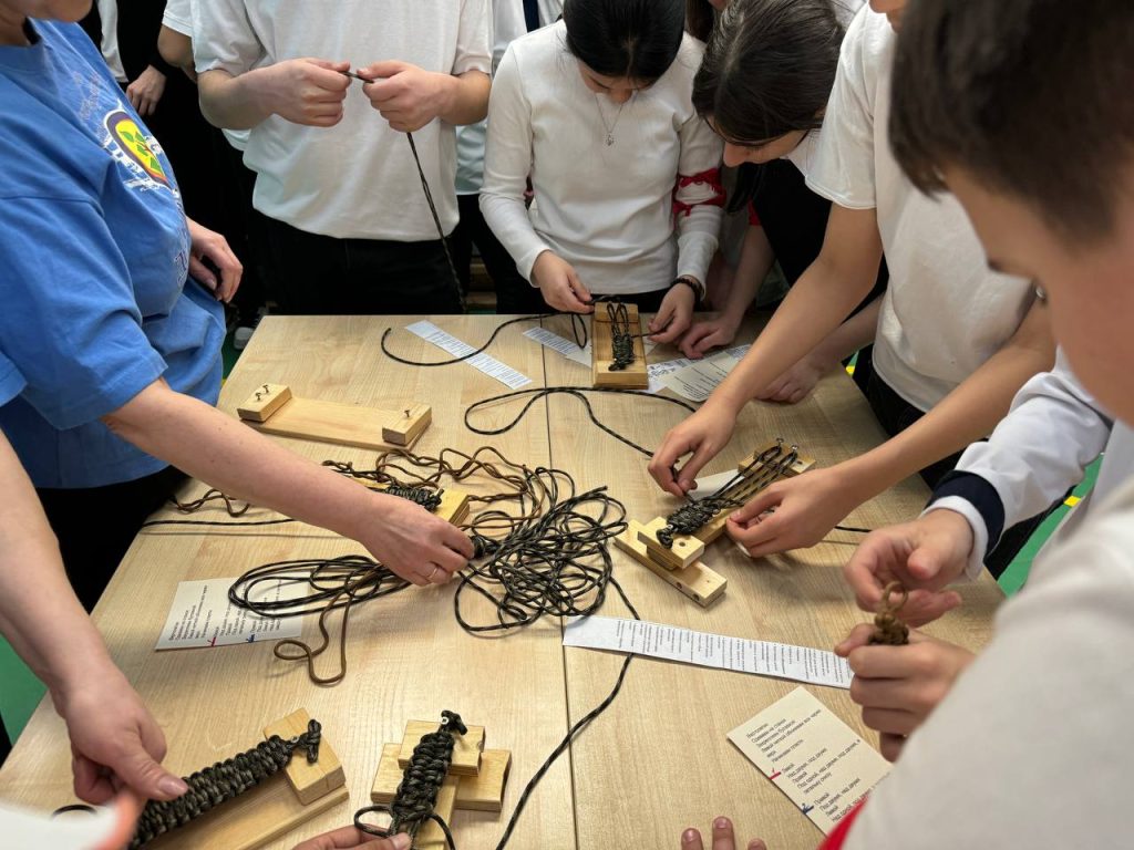 Перед началом урока школьники с интересом включились в мастер-классы: плели тактические браслеты и осваивали азы самопомощи при ранениях. Занятия для них провели инструкторы Центра специальной подготовки «Вектор Жизни» Иван Омельяненко и Екатерина Сенчук, за плечами которых реальный боевой опыт.