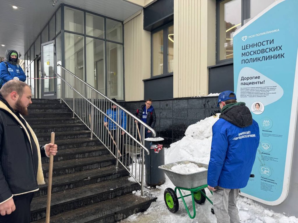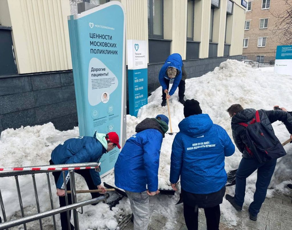 За зиму у входа в медицинское учреждение образовались плотные залежи льда и снега, которые создавали трудности для посетителей медучреждения. Дружная команда единороссов и молодогвардейцев оперативно расчистила входную группу, подходы к зданию и лестницу, обеспечив безопасный и комфортный доступ в поликлинику.